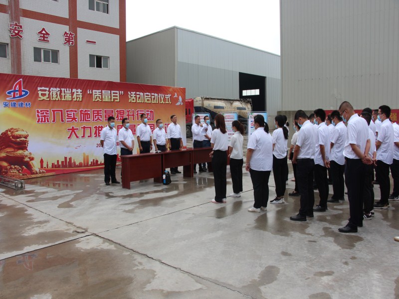 本次質(zhì)量月活動(dòng)以“深入實(shí)施質(zhì)量提升行動(dòng)、大力促進(jìn)質(zhì)量強(qiáng)國(guó)建設(shè)”為主題。安徽瑞特黨支部書記、總經(jīng)理施松在宣讀建材公司“質(zhì)量月”活動(dòng)文件和安徽瑞特質(zhì)量月活動(dòng)方案后作動(dòng)員講話,他強(qiáng)調(diào):一要加強(qiáng)“質(zhì)量月”活動(dòng)組織領(lǐng)導(dǎo),發(fā)掘提質(zhì)增效典型事跡,營(yíng)造崇尚質(zhì)量的濃厚氛圍,確?;顒?dòng)開展取得良好實(shí)效;二要牢固樹立質(zhì)量強(qiáng)國(guó)新發(fā)展理念,持續(xù)鞏固提升全員質(zhì)量管理意識(shí),激發(fā)全員將質(zhì)量管理要求落實(shí)在具體行動(dòng)上;三要切實(shí)推進(jìn)質(zhì)量提升行動(dòng),創(chuàng)新質(zhì)量技術(shù)管理思路,補(bǔ)齊技術(shù)研發(fā)短板,增強(qiáng)產(chǎn)品市場(chǎng)競(jìng)爭(zhēng)力;四要抓好過程管理缺陷的整改落實(shí),善于辨識(shí)各生產(chǎn)環(huán)節(jié)質(zhì)量風(fēng)險(xiǎn)點(diǎn),以高度的責(zé)任感和強(qiáng)有力的舉措,推動(dòng)公司實(shí)現(xiàn)高質(zhì)量發(fā)展。
