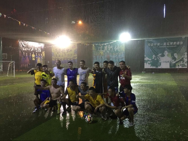 比賽開始前,雨絲細密起來,越下越大,“是等雨停,還是冒雨進行?”征求大家的意見,來比賽的隊員們熱情高漲,“咱們正常踢吧!”于是,一場大雨中的足球比賽開始了!