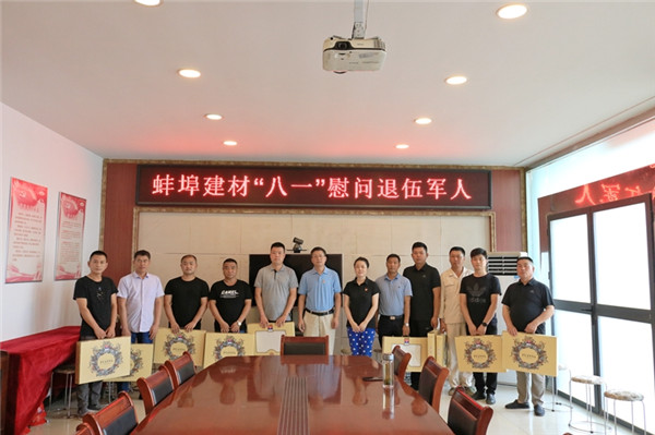為紀(jì)念中國人民解放軍建軍93周年,8月5日下午,蚌埠建材黨支部開展了對退伍軍人職工的慰問活動。公司領(lǐng)導(dǎo)班子通過送去慰問品和祝福的方式向退伍軍人職工致以節(jié)日的問候,把企業(yè)的溫暖和關(guān)愛送到他們手中,感謝他們?yōu)楣景l(fā)展中做出的貢獻(xiàn),并鼓勵他們立足本職工作,繼續(xù)發(fā)揚軍人退伍不褪色的精神,在平凡的崗位上再立新功。